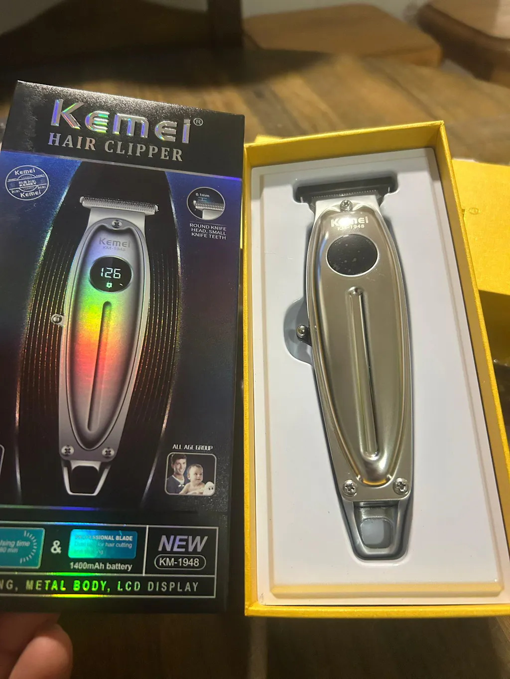 El paquete contiene: 1* Máquina, 1* Cable Usb, 1* Cepillo de limpieza, 1* Manual, 6* Cabezales (0.5/1/1.5/2/3/4) equivalente en milímetros a (1.5/3/4.5/6/10/13), 1* Protector de cuchilla, 1* Peine especial para degradados, 2* Grips.